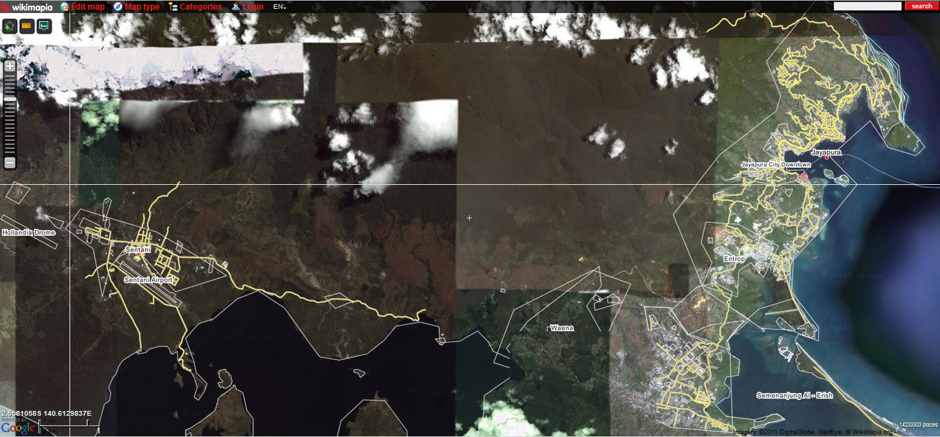 Jayapura, Abepura, Waena dan Sentani dari Citra Google