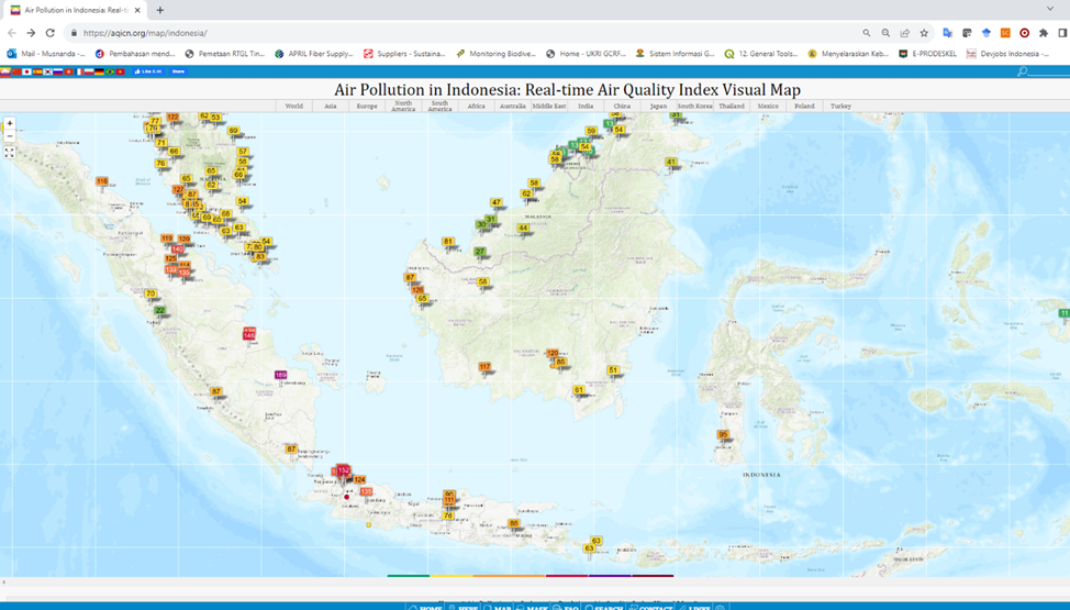 Salah satu situs yang menyediakan data kualitas udara adalah rilis dari perusahaan Swiss Bernama IQAIR, perusahaan ini mendorong kolaborasi banyak pihak baik individu, perusahaan dan pemerintah dalam memperbaiki kualitas udara. Situs ini secara online menyediakan data kualitas udara di seluruh dunia dan untuk di Indonesia bisa menggunakan alamat web: https://www.iqair.com/id/. Website ini juga menyediakan peta kualitas udara, misalnya jika ingin mengetahui kondisi di Jakarta bisa mengakses alamat web: https://www.iqair.com/air-quality-map/indonesia/jakarta, dimana saat tulisan ini dibuat ada 3 lokasi pemantauan masuk kategori tidak sehat dan selebihnya tidak sehat untuk group yang memiliki sensitifitas (memiliki penyakit pernafasan).