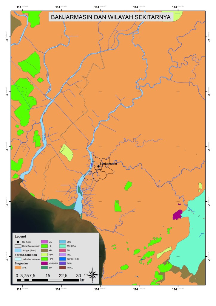 Berikut peta-peta yang mengambarkan kondisi Kota Banjarmasin dan wilayah sekitarnya.