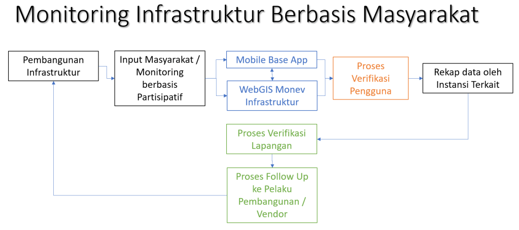 Dalam konteks kualitas infrastruktur tentunya perlu dibangun aplikasi yang berbasis spatial untuk memastikan lokasi dari infrastruktur dapat dipantau dan dimonitoring oleh masyarakat. Salah satu pendekatan spatial yang dapat dilakukan adalah melalui konsep Participatory GIS yang memungkinkan masyarakat dapat memberikan kontribusi informasi dan masukkan data dan informasi yang tergeoreferensi. Meskipun istilah participatory GIS sudah dikeluarkan sejak tahun 90-an, tetapi konteks saat ini masih sangat relevan, dimana peran masyarakat dalam pembangunan dan dalam pengelolaan sumberdaya alam. Saat ini perkembangan teknologi lebih membuka peluang bagaimana partisipasi masyarakat dalam pembangunan bisa dilakukan secara lebih jauh.