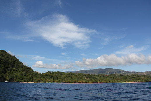 Pantai pasir putih Base G dari laut